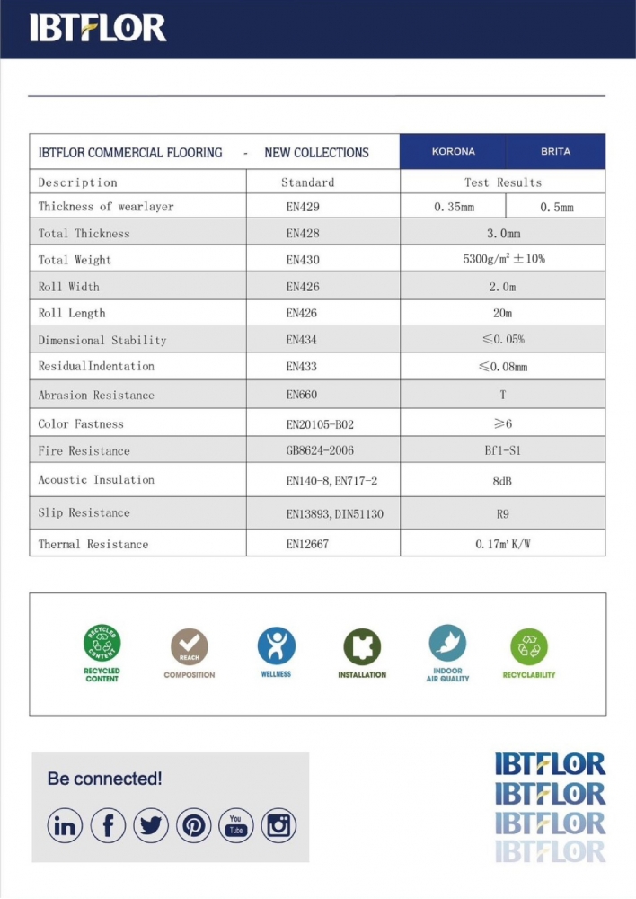 Điểm mạnh lớn nhất của sàn vinyl IBTFLOR nằm ở khả năng ứng dụng linh hoạt. Dòng sàn vinyl cuộn có quy cách tiêu chuẩn 2m x 15m x 3.0mm, phù hợp cho các công trình diện tích lớn cần thi công nhanh, bề mặt liền mạch và đồng bộ.