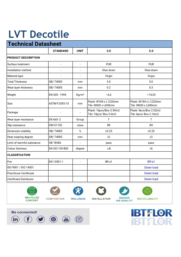 Với độ dày 3.0mm và 5.0mm, Decotile cho phép linh hoạt trong việc lựa chọn theo từng nhu cầu sử dụng, từ văn phòng đến showroom hay căn hộ cao cấp.