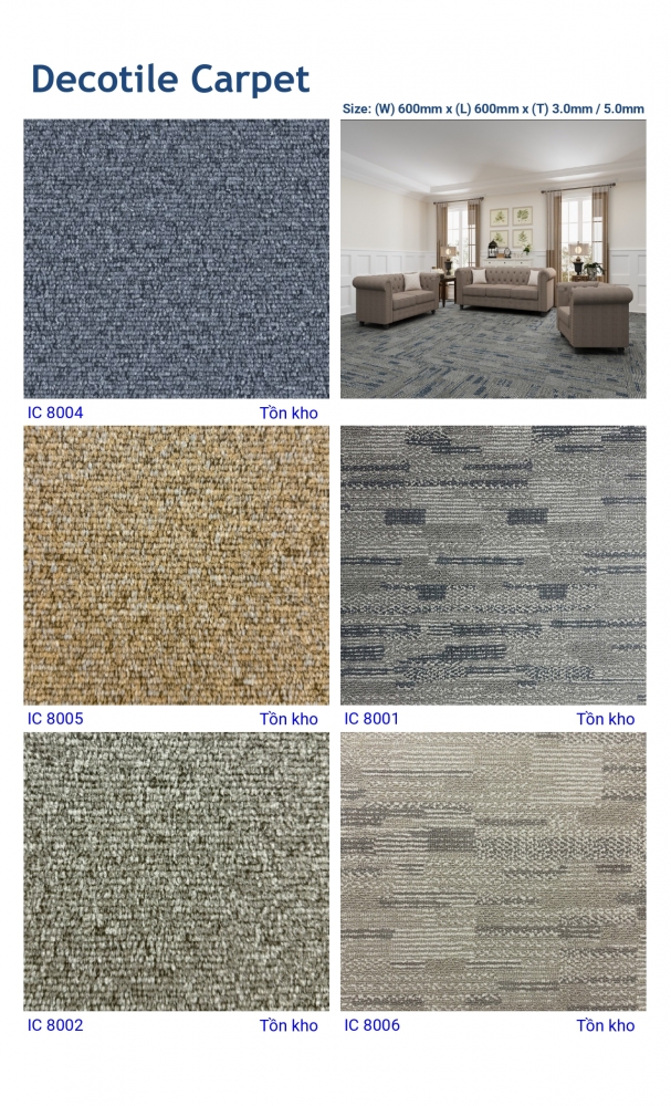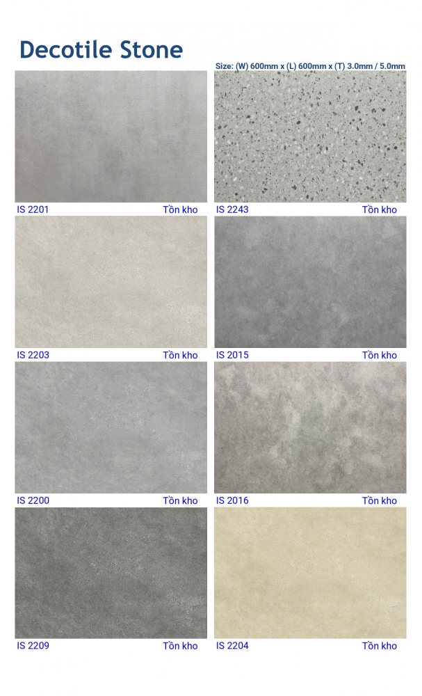 Với độ dày 3.0mm và 5.0mm, Decotile cho phép linh hoạt trong việc lựa chọn theo từng nhu cầu sử dụng, từ văn phòng đến showroom hay căn hộ cao cấp.